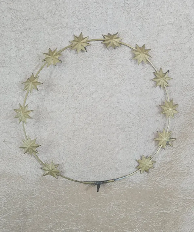 Antiguo halo resplandor corona para imagen santo. Es grande. Está pintado por un lado. Alguna punta de alguna estrella perdida.