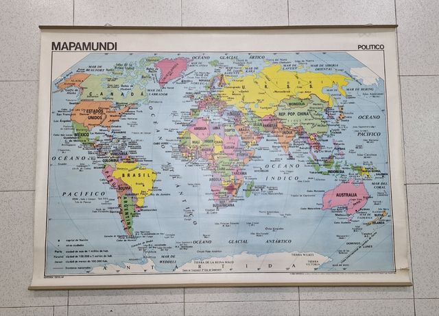 Detalles del productoAntiguo Mapa mural Mapamundi material escolar años 80, impreso a