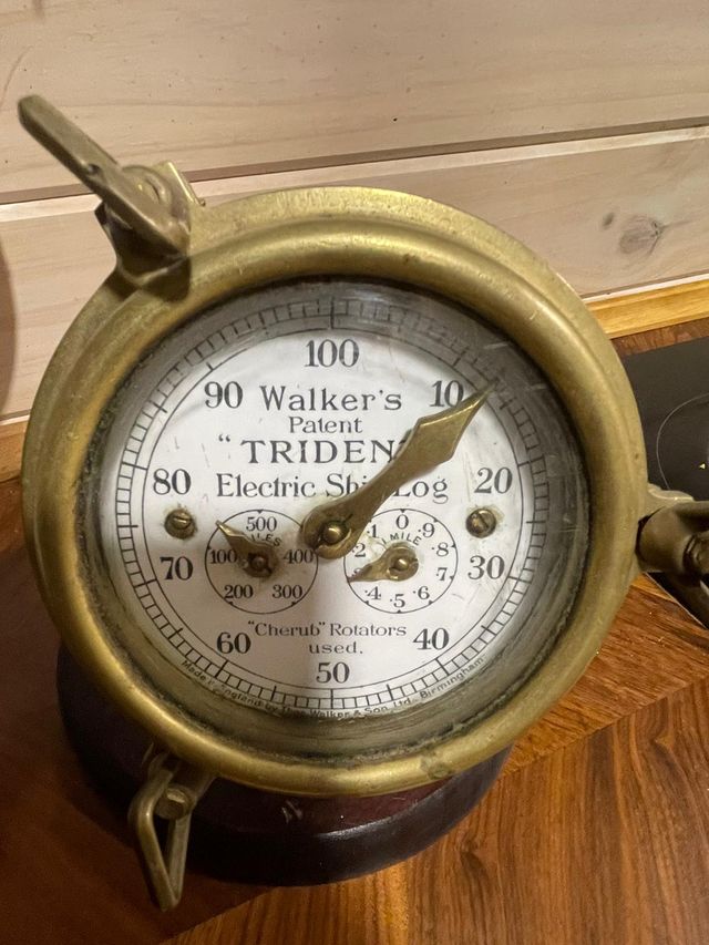 Detalles del productoAntiguo marcador de millas náuticas de bronce, modelo Triden de Walker's.