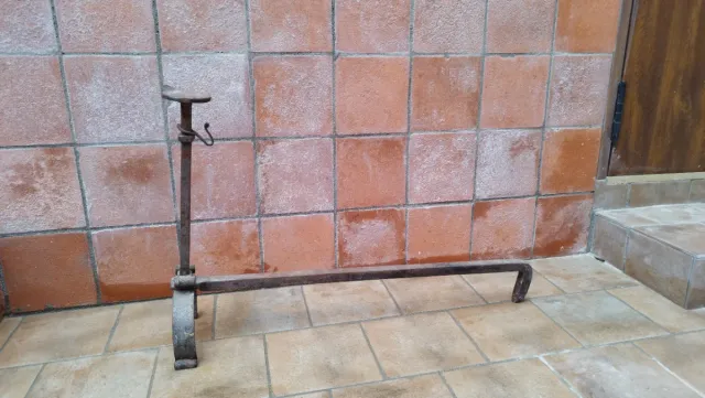Detalles del productoAntiguo morrillo de hierro forjado, ideal para chimenea. Está en buenas condiciones, está en hierro natural con oxido como se aprecia en las fotos , mide de largo 77 cm y de alto 50 cm , es grande.