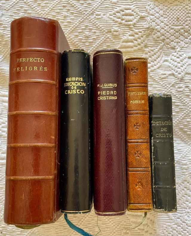 Detalles del productolote de libros de misa y de tema religioso antiguos en muy buen estado. Pequeñas joyas con edición de lujo: grabados, encuadernación artesanal, etc. Los he tenido como decoración y se conservan muy bien. Pide más fotos si lo deseas Medidas del producto