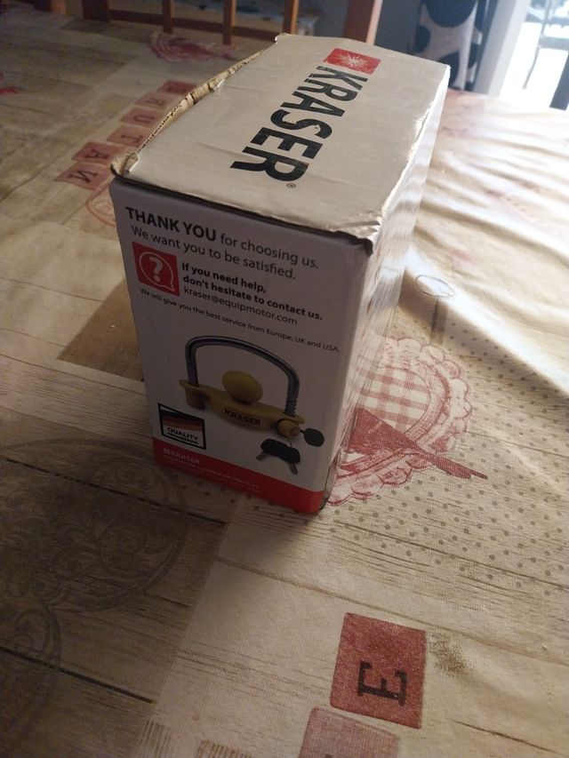 Antirrobo de la marca Kraser, ideal para asegurar tus pertenencias. - Incluye dos llaves. - Diseño robusto y de alta calidad.