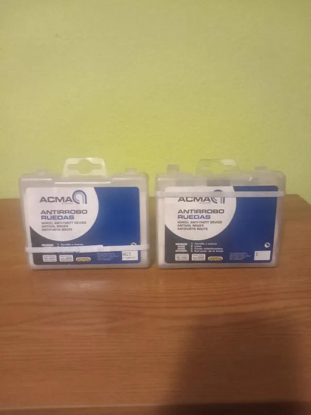 Pack de dos dispositivos antirrobo para ruedas de coche de la marca ACMA. - Modelo: Antirrobo Ruedas. - Dispositivo antivuelco y antipincho. Cada uno 15 euros