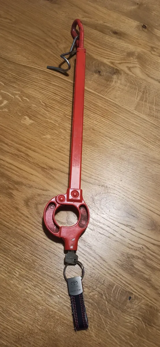 Herramienta para volante de coche, color rojo. - Incluye un llavero con el logo de Toyota. - Mecanismo de cierre con llave.