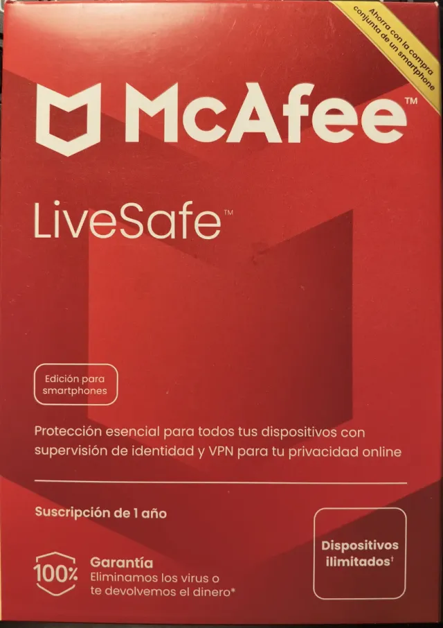 Detalles del productoProtección esencial para tus dispositivos con McAfee LiveSafe y VPN. Sin abrir con precintos originales.
