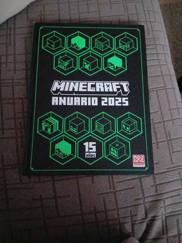 Detalles del productoAnuario de Minecraft para el año 2025. Presenta un diseño con motivos hexagonales y elementos icónicos del juego.