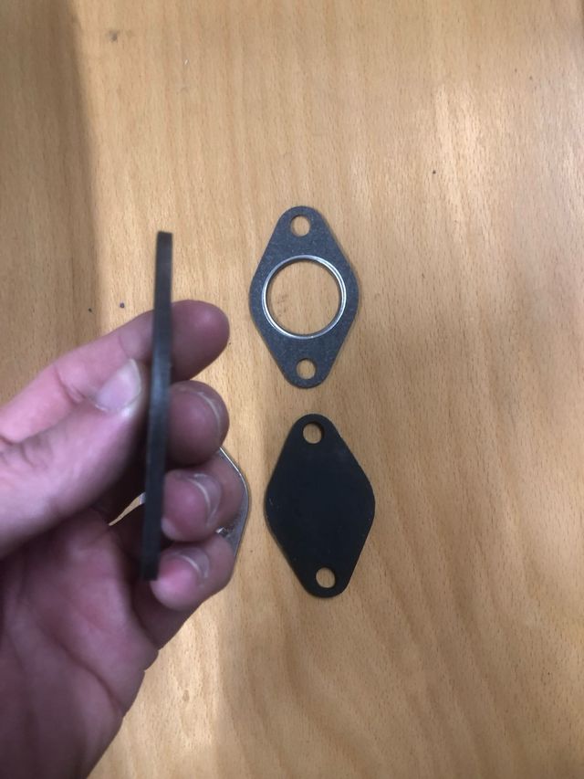 Detalles del productochapa/tapa ciega de buen grosor (3mm) de acero inox mas junta para anular egr, sirve para los 3 sitios, colector escape, enfriador egr, y para la egr, preguntar cualquier duda tengo varias, lo normal es que necesites 2, para hacerlo correctamente, lo envio lo mas rapido posible.