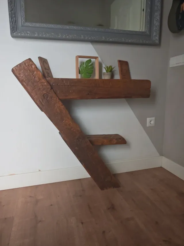 Aparador de madera rústico hecho a mano con vigas