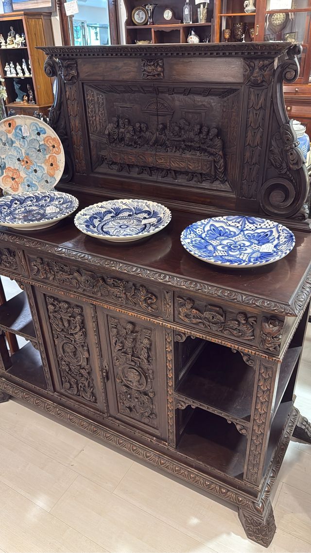 Detalles del productoAparador en madera con la talla de la Santa cena estilo remordimiento talla de Angeles también en puertas 154 cm de altura 140 de ancho 54 de fondo RD 00539 ❤️ Antigüedad Compras lo que ves no dudes en preguntar y pedir fotos antes de la compra puede tener defectos por sus años muebles Antiguedades Porcelana cerámica oriental