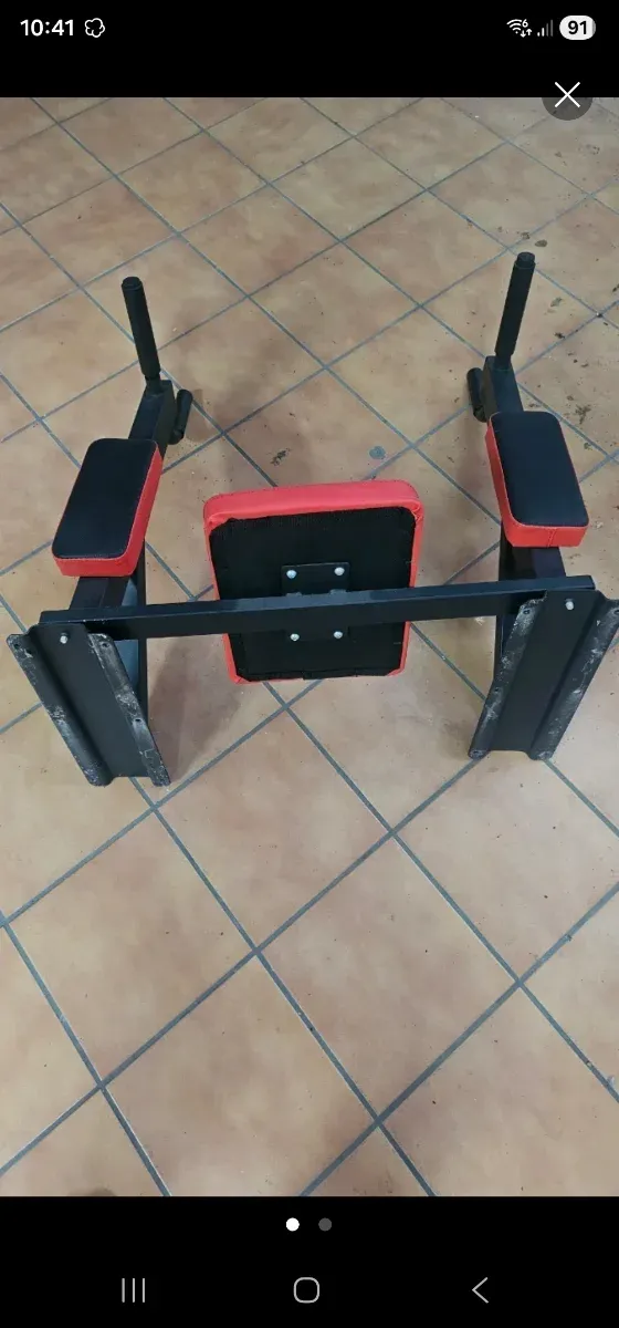 Aparato de gimnasio de la marca ONE TWO FIT, ideal para entrenamientos en casa. - Estructura metálica robusta. - Acolchado en color rojo y negro. - Diseño compacto.