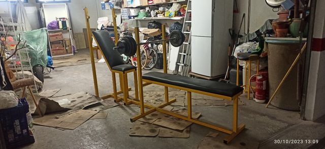 Detalles del productoUn banco de press banca y press banca inclinado, en una pieza. Se pueden separar los dos aparatos. Fabricación propia. No tiene barra ni discos, porque ya los vendí. Se ha usado muy poco. Precio negociable.