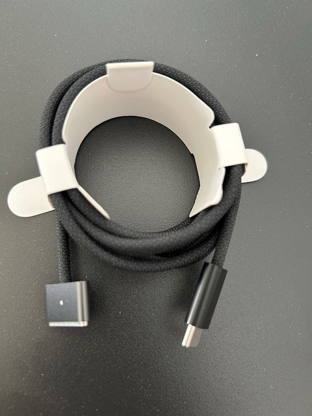Detalles del productoCable de carga USB-C a MagSafe 3 en color Negro Espacial. El cable tiene un acabado trenzado y es ideal para cargar dispositivos compatibles.