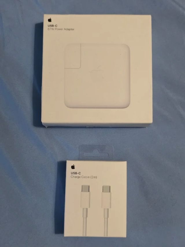 Detalles del productoPack de adaptador de corriente Apple USB-C de 67 W (modelo A2518) y cable precintado 2 metros. Perfecto para cargar tu MacBook Pro de 13" (2016 en adelante), MacBook Pro 14" con chip M1 Pro y iPad Pro de última generación. Compatible con cualquier teléfono con puerto USB C.