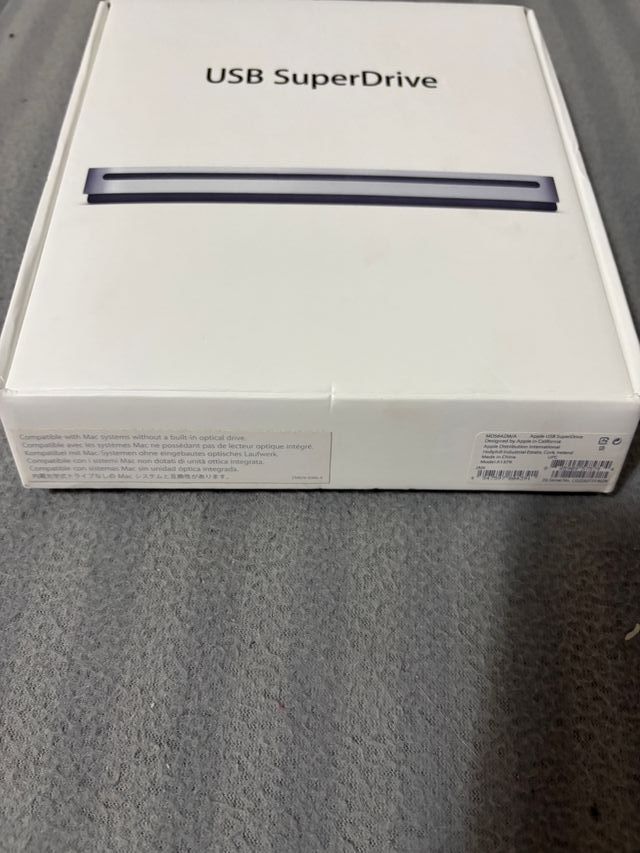 Unidad SuperDrive USB de Apple. - Diseñado por Apple en California. - Fabricado en China. - Modelo A1379.