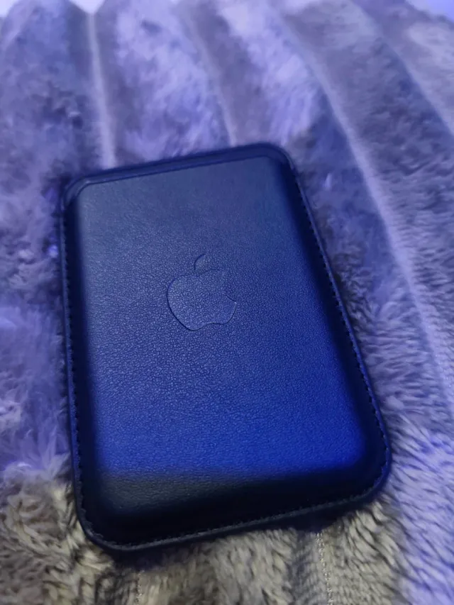 Cartera de cuero negra para tarjetas. - Diseño elegante y minimalista. - Logo de Apple grabado.