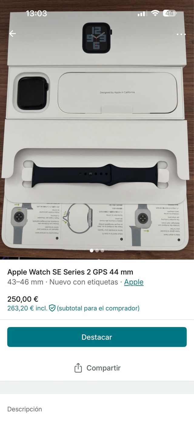 En su caja · Apple · Watch SE Series 2 GPS 44mm · Negro