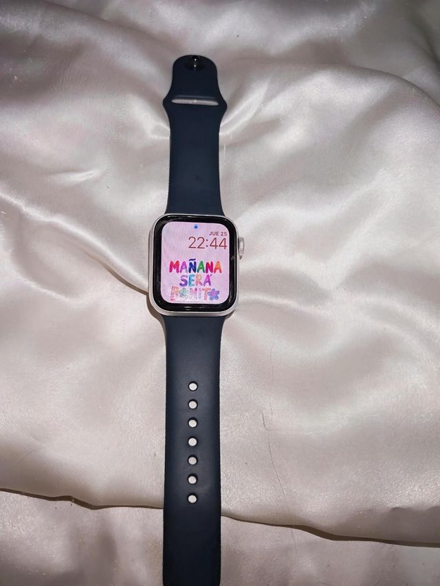 Vendo Apple Watch SE de 40 mm (GPS), caja de aluminio en color plata y correa deportiva color medianoche (talla S/M).