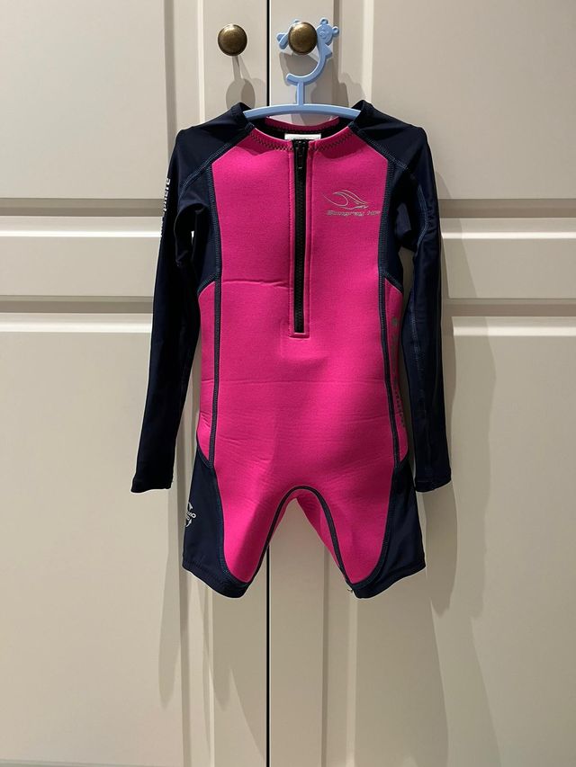 Con protección 100% UVA y UVB y una construcción híbrida de neopreno y spandex, el calentador central Stingray HP mantiene a los niños calientes y les permite la libertad de movimiento que necesitan mientras juegan dentro y fuera del agua.