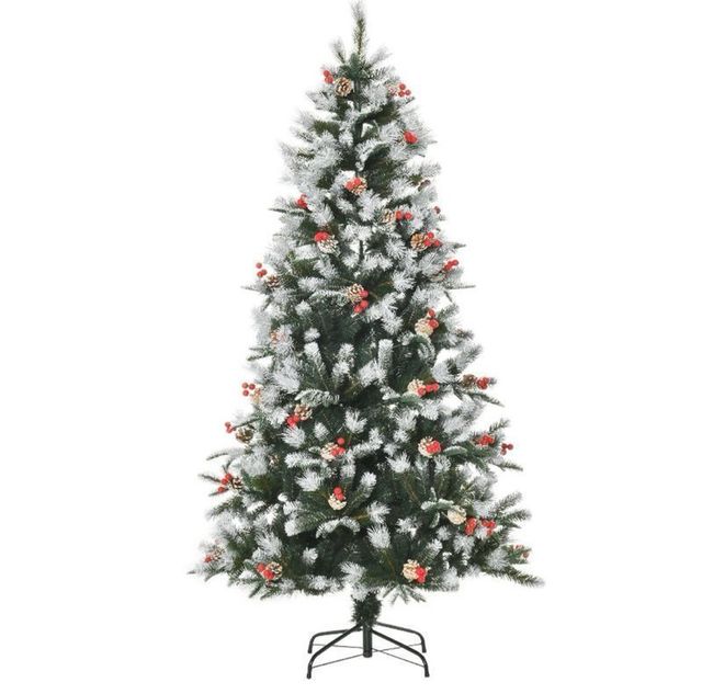 Detalles del productoÁrbol de navidad decorativo de aspecto muy realista, con la cabeza de las ramas en color blanco simulando un aspecto nevado y creando una atmósfera invernal y navideña. Compuesto por 678 ramas, 53 piñas y 53 bayas decorativas que le dan un aspecto aún más natural y real. Árbol con ramas de plástico y PE, y estructura y base de metal para mayor estabilidad y resistencia. La base es desmontable y plegable para facilitar su almacenaje. Fabricado en diferentes piezas, permite montarlo y desmontarlo rápidamente, ahorrando espacio fuera de la época navideña.