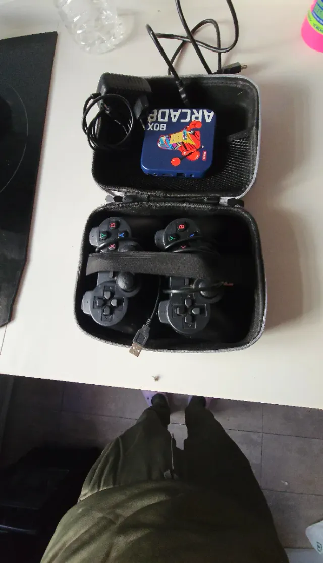 Detalles del productoConsola retro Arcade Box con dos mandos para revivir la experiencia arcade.