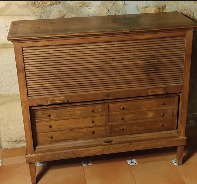 Detalles del productoOriginal y espectacular Archivador Francés de persiana antiguo de madera maciza de roble, baldas y cajones con organizadores,súper decorativo y funcional para guardar todo tipo de documentos,ideal para despachos, oficinas, como motrador de negocio, decoración Industrial.No se envía.Mueble papelera, bargueño,coleccionistas.. Precio no negociable!