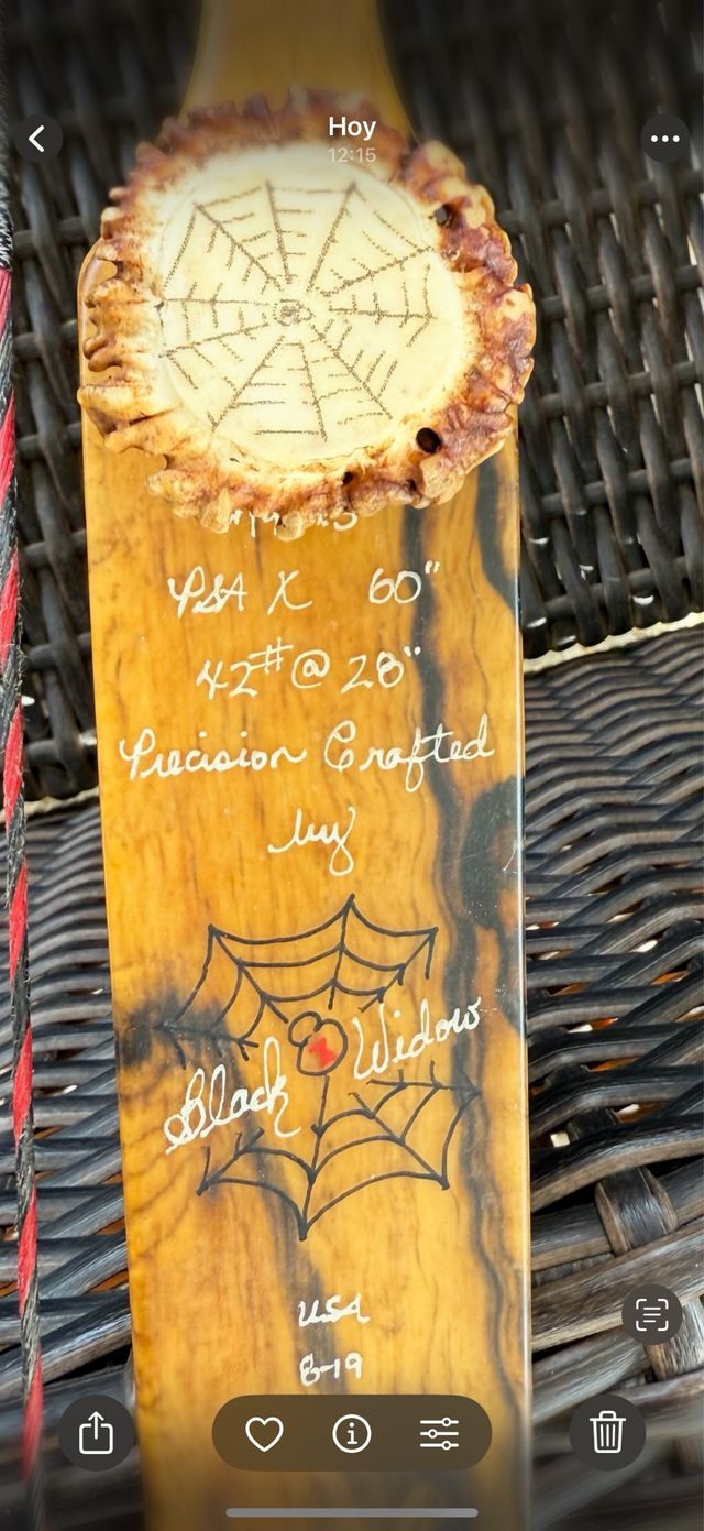 Detalles del productoArco Black Widow hecho a mano, ideal para zurdos. Presenta un diseño único con una telaraña grabada.