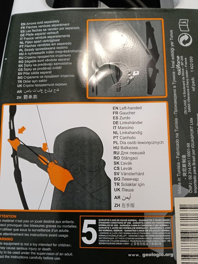 Arco de tiro con arco Initech 2 para zurdos, en perfecto estado. - Incluye arco y dos palas. - Diseño negro y naranja. - Material compuesto resistente.