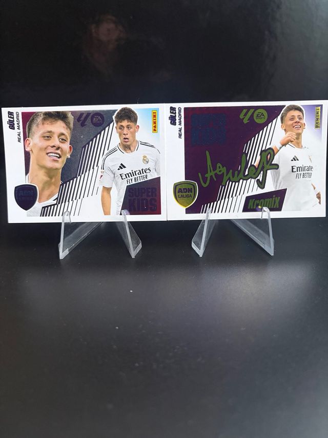 Detalles del productoLote de cromos de Arda Guler jugador Del Real Madrid de la colección liga este, las cartas especiales de súper kids y la kromix.