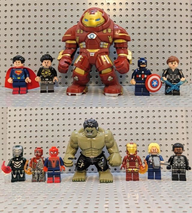 Detalles del producto Es un lote compuesto por 12 figuras compatibles tipo lego de los comics y películas de Avengers de Marvel. Se incluye: Hulk, Iron man Hammerhead, Iron Man, Spiderman, Tony Stark, Thor, Superman, Capitán América, Black Widow, Visión, Black Panther, y la Armadura Hulk buster de Ironman. No son marca lego. ##hashtags## batalla, franquicia, figuras, universo cinematográfico, diseño, cómics, Vengadores, superhéroes, Infinity War, escala, Tony Stark, acción, tecnología avanzada, Infinity Saga, películas, Stark Industries, coleccionables, articulada, universo Marvel, Endgame, fan art, ciencia f
