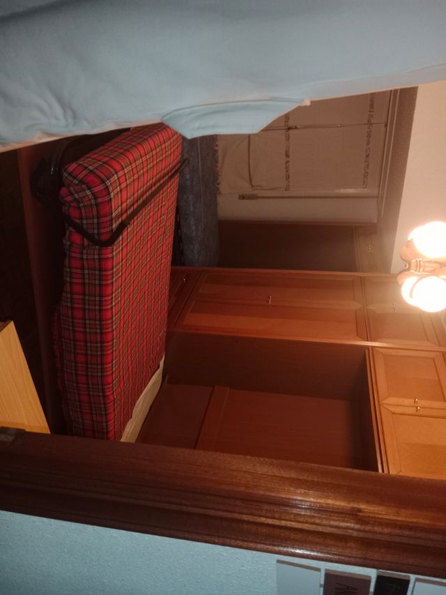 La cama que está un poco arriba es por qué tengo muchas cosas en la habitación y no puedo bajarlo del todo pero todo esta en perfecto estado ya que no lo usamos escucho ofertas