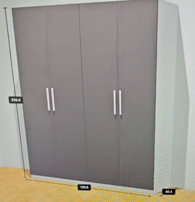 Detalles del productoArmario de cuatro puertas en color vengue . Sus medidas son 236 cm de alto, 199 cm de ancho y 60 cm de profundidad.