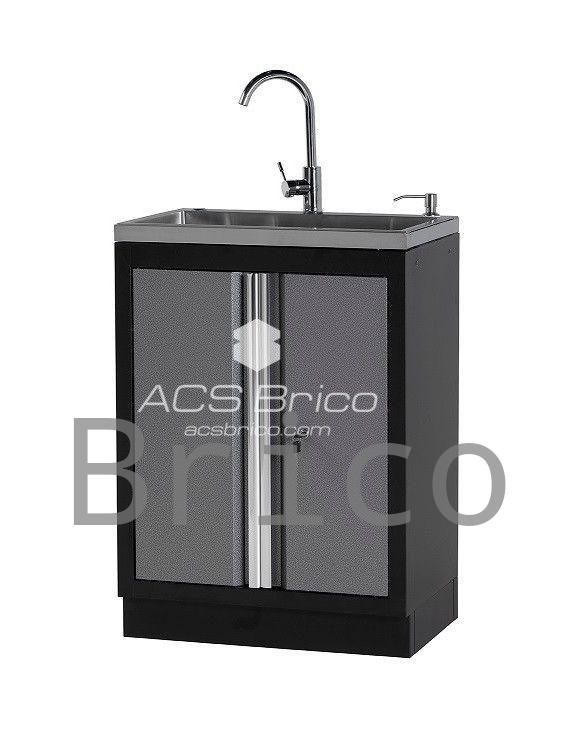 - Armario base con fregadero, 2 puertas con cerradura y 2 baldas interiores, sólido y muy válido para ambientes de taller con herramientas pesadas.