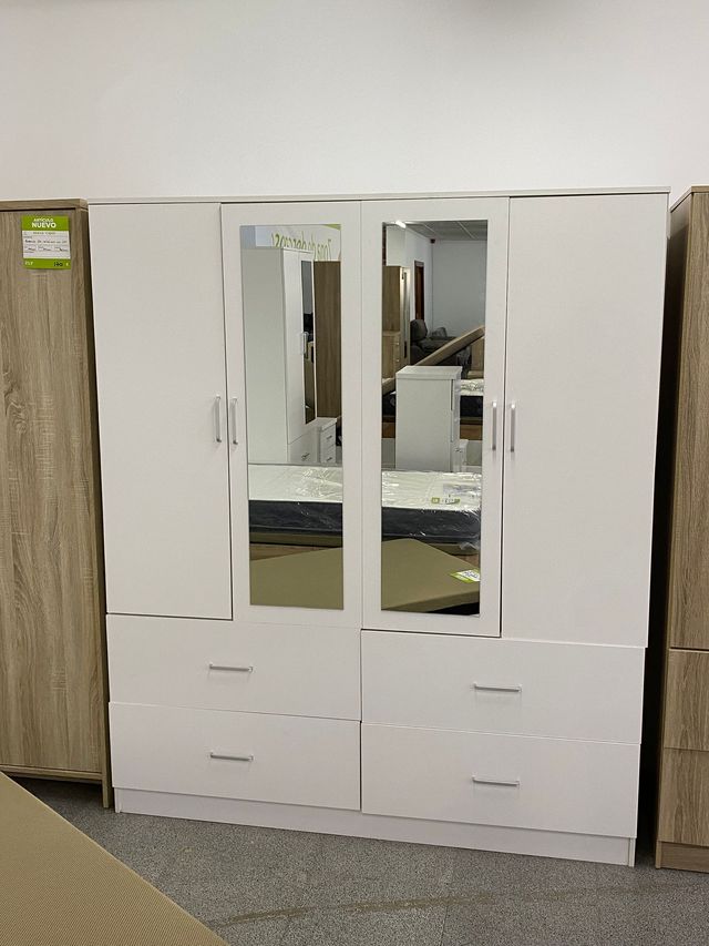 Armario blanco con 4 puertas y 4 cajones + espejos