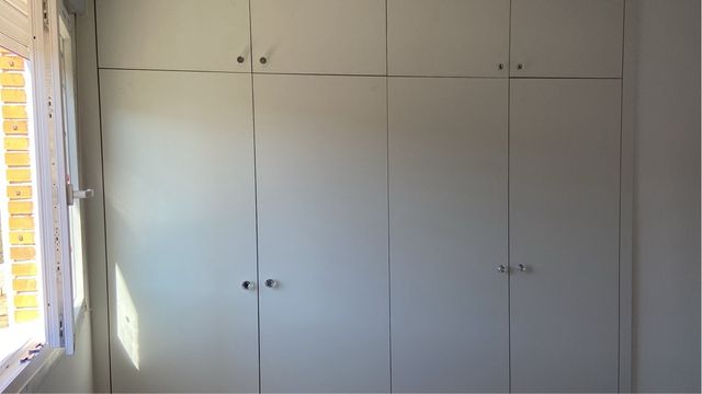 Armario de madera con acabado blanco y puertas. - Diseño moderno y minimalista. - Tiradores plateados. - Ideal para organizar tu espacio.