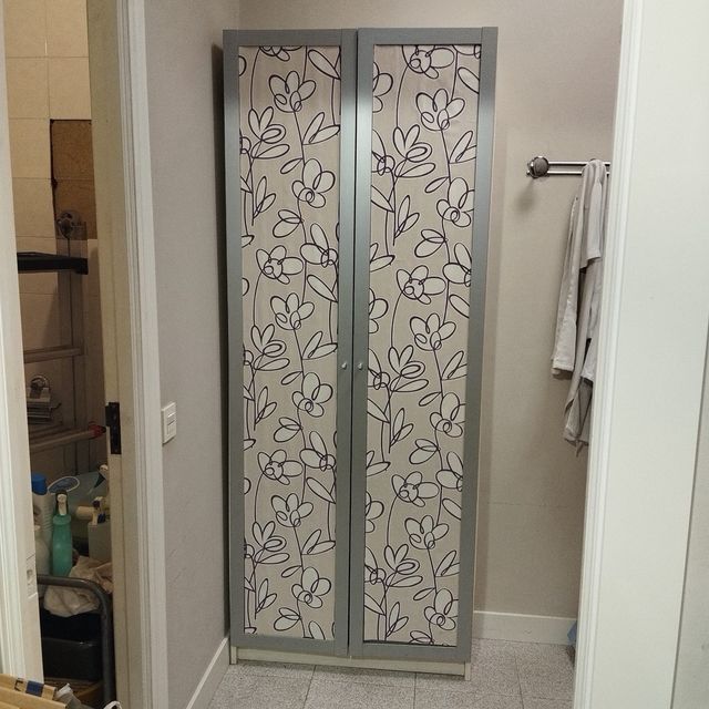Armario blanco puertas grises decoradas