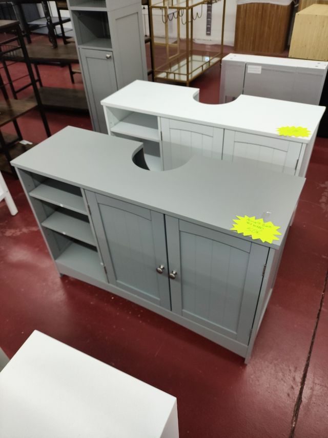 Armario de baño gris y blanco de madera 90x30x60