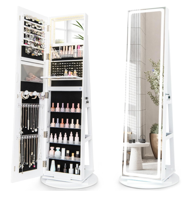Armario Joyero COSTWAY Blanco con Espejo LED