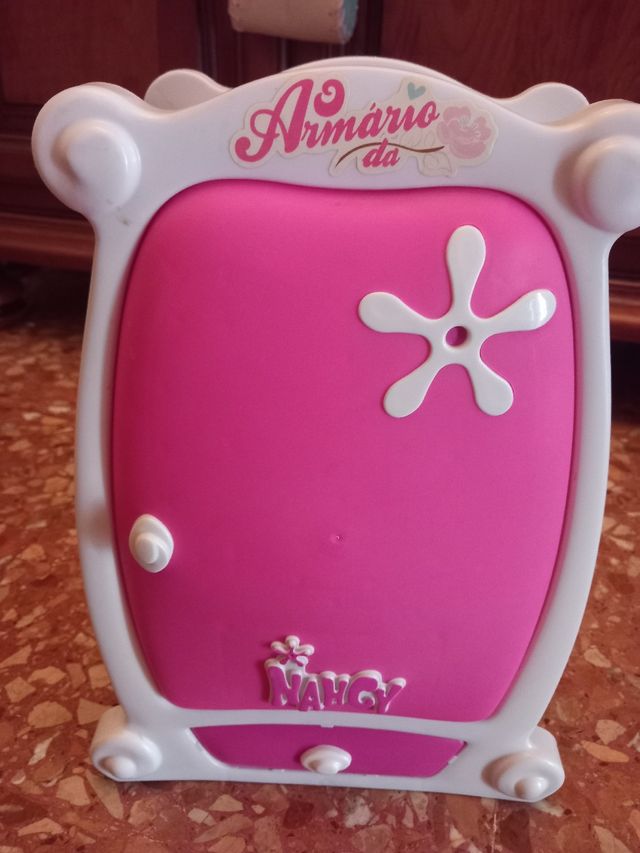 Detalles del productoArmario para muñecas Nancy, ideal para guardar ropa y accesorios. Es rosa y blanco, con un diseño bonito y elegante.