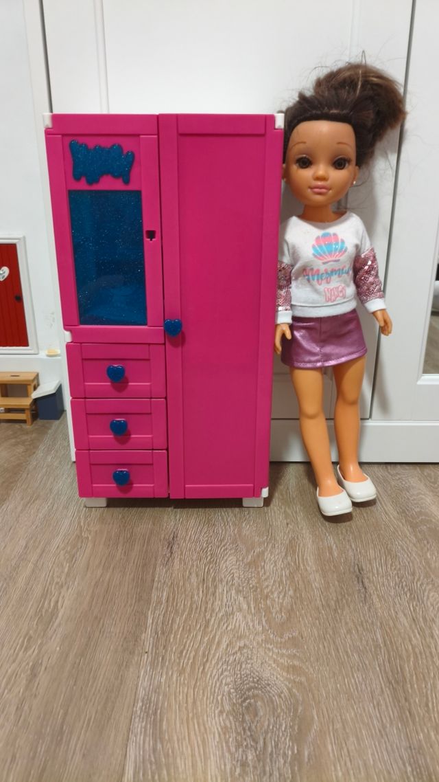 Detalles del productoPreciosa y completa caseta-armario para muñecas Nancy. Incluye perchas, cajones y accesorios. Ideal para guardar y organizar los complementos de tu muñeca. Está en buen estado, le falta el pomo a una puerta y un vestido está algo manchado (ver fotos)