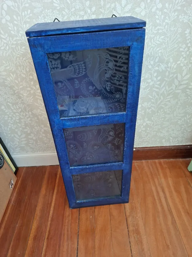 Como nuevo · Azul y Transparente · Vidrio y Madera