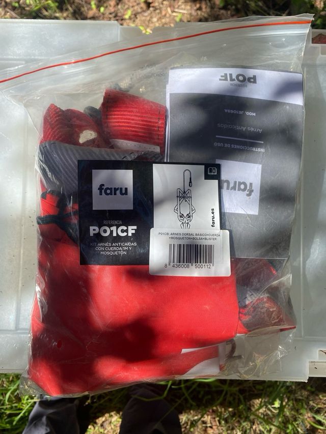 Arnés anticaídas con enganche dorsal básico incluye cuerda y mosquetón. usado 1 vez