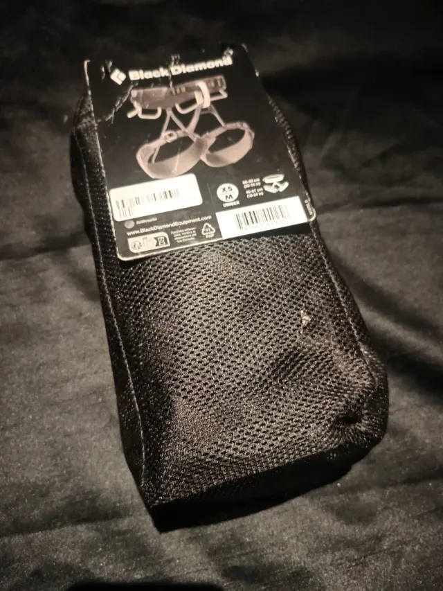 Arnés de escalada Black Diamond en color negro, talla XS/M - Diseño ligero y compacto. - Ideal para escalada y alpinismo. - Incluye bolsa de transporte.