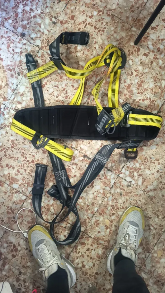 Detalles del productoArnés de seguridad con cinturón y correas ajustables.