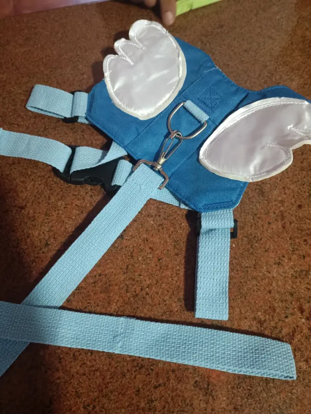 Arnés de seguridad para bebé con un diseño divertido de alas. - Color azul. - Correas ajustables. - Cierre de seguridad.