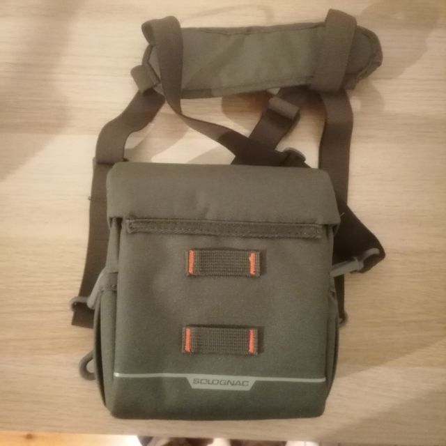 Detalles del productoArnés de color verde para llevar prismáticos.