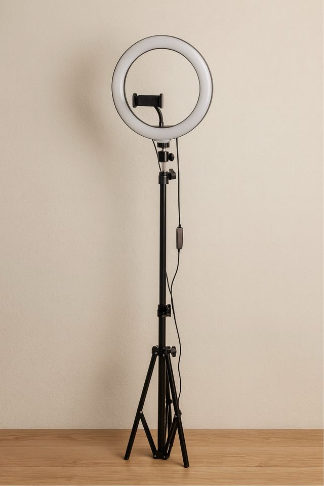 Vendo aro de luz LED con soporte y trípode regulable en altura, ideal para vídeos, fotos, maquillaje, directos, contenido para redes sociales, Zoom, etc.
