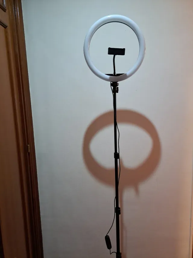 Detalles del productoAro de luz con trípode ajustable, ideal para fotografía o video.