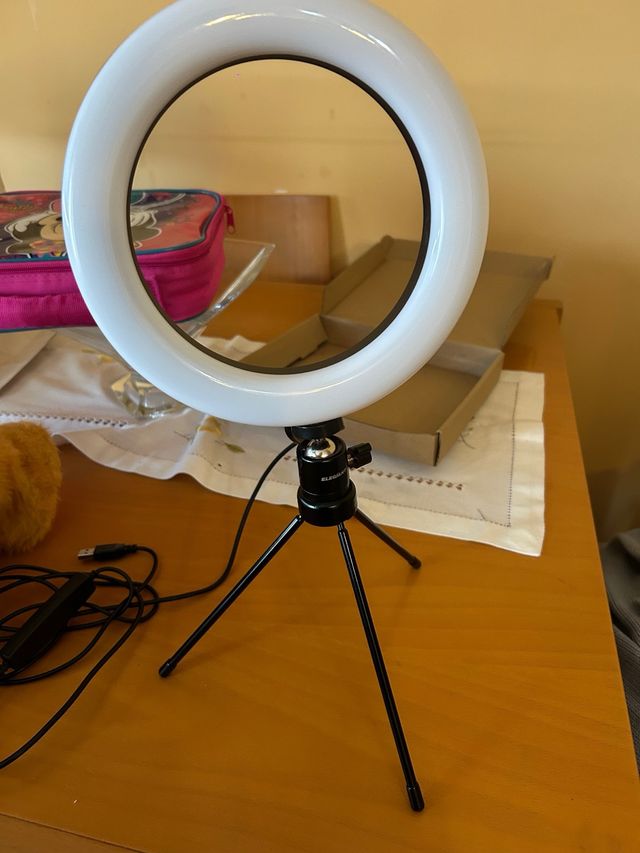 Aro de luz circular con trípode incluido. Ideal para fotografía o video. - Aro de luz LED. - Trípode ajustable. - Cable de alimentación USB.