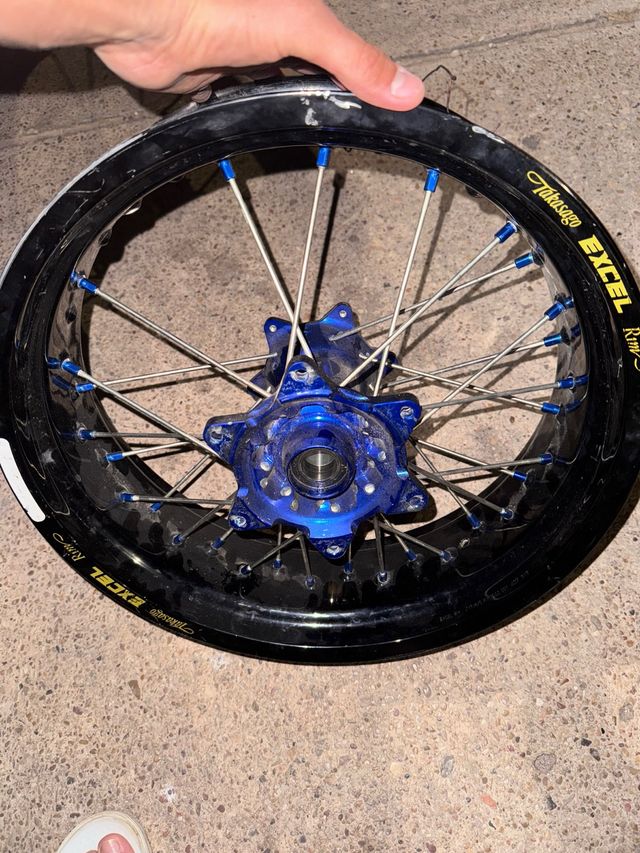 Se vende aro excel takasagonpara reparar, es 17 pulgadas, 5.0, 36 radios. Se ha usado muy poco pero esta asi por un accidente. SOLO SE VENDE EL ARO