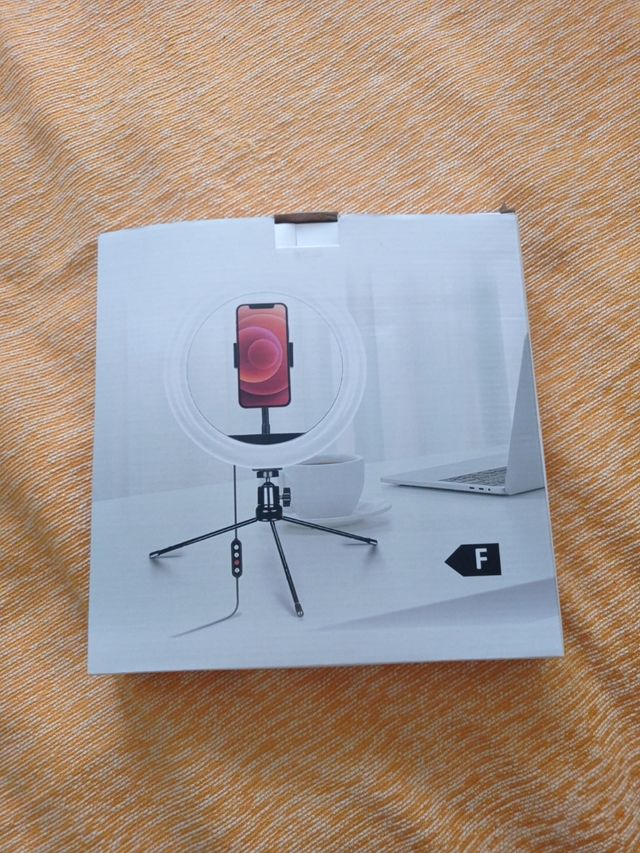 Aro de luz LED para fotos y selfies, en perfecto estado. Incluye trípode. - Iluminación LED regulable. - Trípode de mesa. - Soporte para móvil.